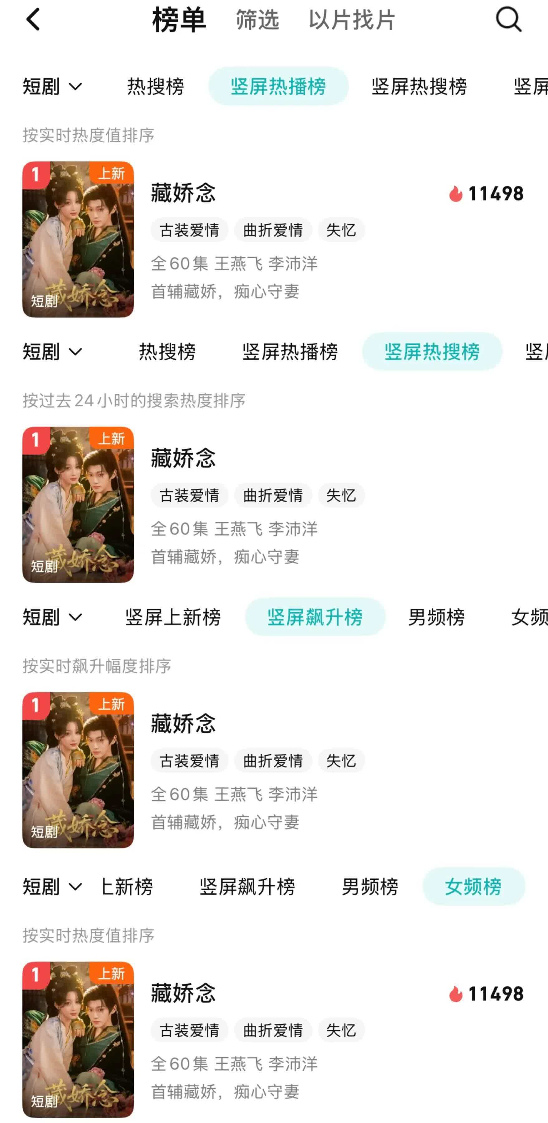 该剧如故上线,腾讯视频首日开播热度11498,一举登顶腾讯视频短剧竖屏热播榜、竖屏热搜榜、竖屏飙升榜和女频榜四大榜单TOP1