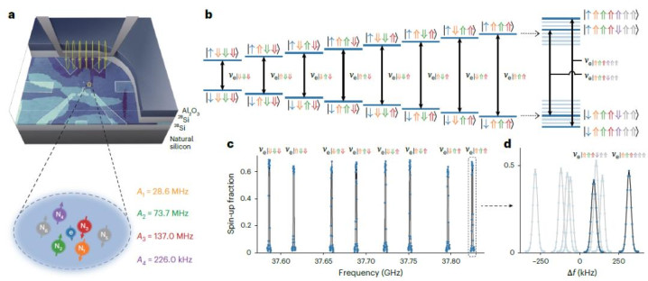 图丨硅基磷原子量子芯片器件结构以及 ESR 能谱表征(开头:Nature Electronics)