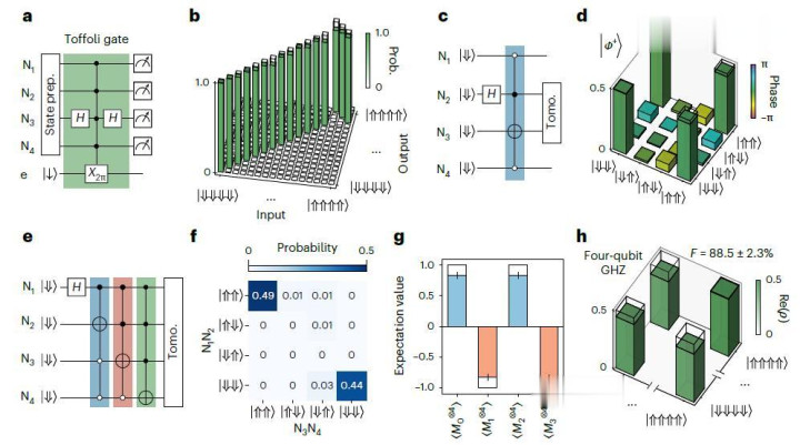 图丨Toffoli 门的竣事以及贝尔态、四比特 GHZ 态制备(开头:Nature Electronics)