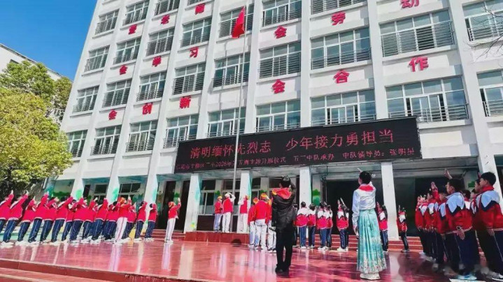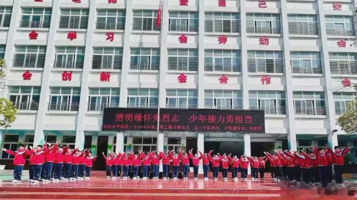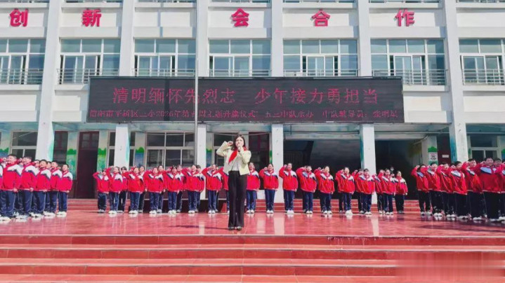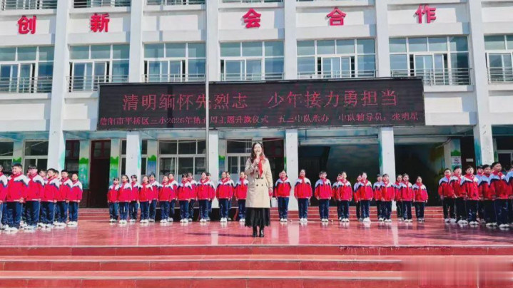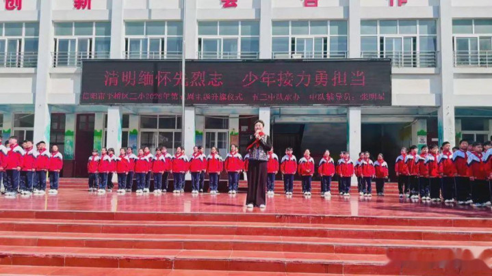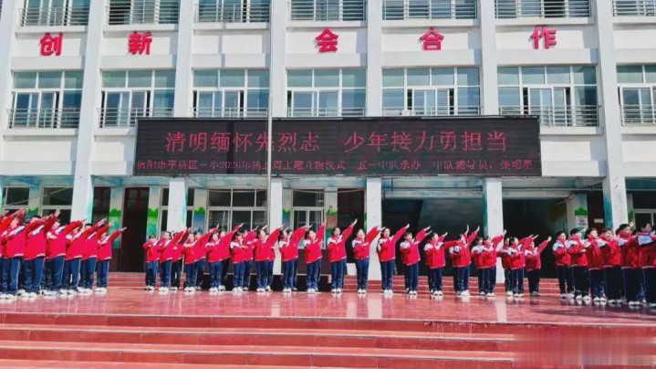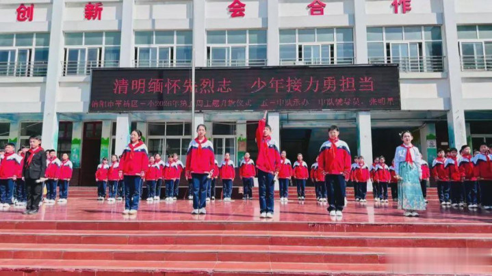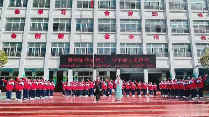 4月1日上昼,信阳市平桥区第三小学举行“明朗记念先烈志,少年奋发勇担当”第五周主题升旗典礼,深刻记念改动先烈公垂竹帛,传承红色基因,厚植学生爱国认识情愫,指引少先队员牢记历史、勇担责任。