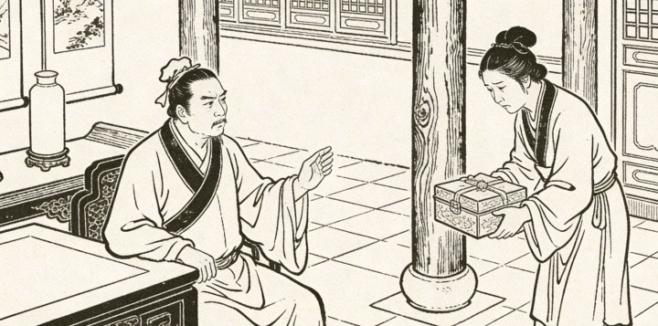 说罢,女子将书放回架上,不再多言,回身排闼而出,身影消散在夜色之中,只留一缕浅浅梅香,久久不散。
