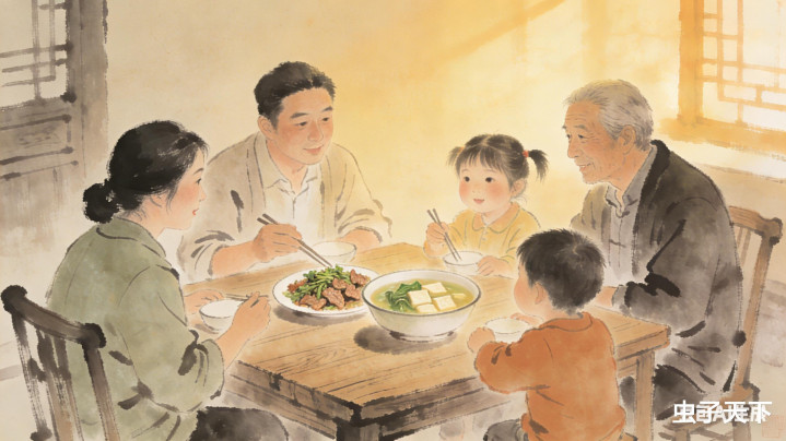 咱们一家东说念主围坐在桌子旁,吃着端庄的滋味,聊着家常,暖烘烘的焰火气,填满了整个这个词房子。