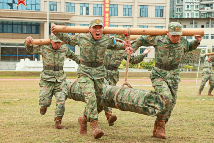 官兵们负重致远、神勇拼搏