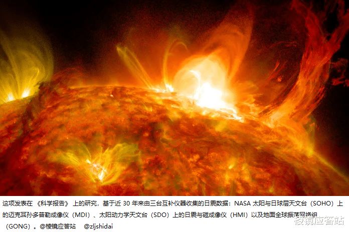 直到最近,两项冲突性的接头就像两束强光,穿透了太阳不透明的外层,新泽西理工学院的物理学家们作念了件看起来不太可能的事儿,他们分析了近三十年来,NASA卫星还有群众大地不雅测网集聚的几十亿个太阳震荡的数据点