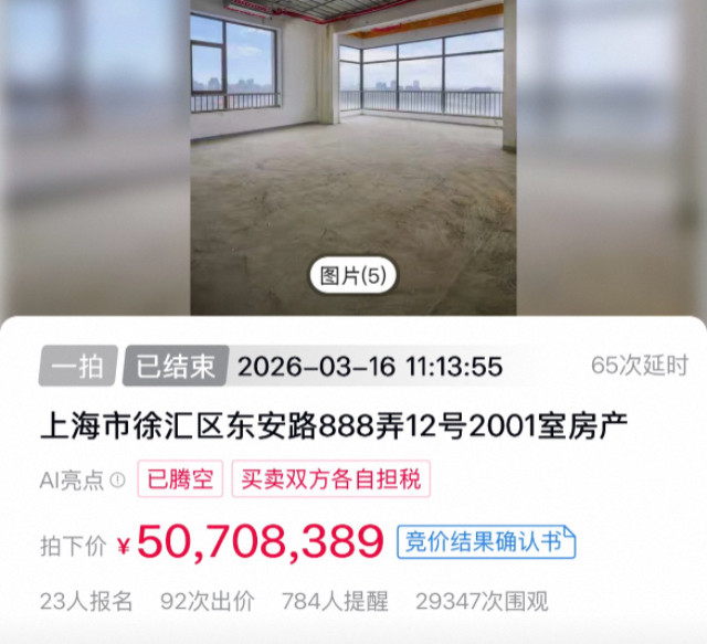 该房源眩惑23东谈主报名,经由92轮竞价才最终落锤。成交单价达16.87万元/宽泛米,已略高于该小区当期挂牌均价(遣散2月贝壳平台挂牌均价约为16.51万元/宽泛米)。