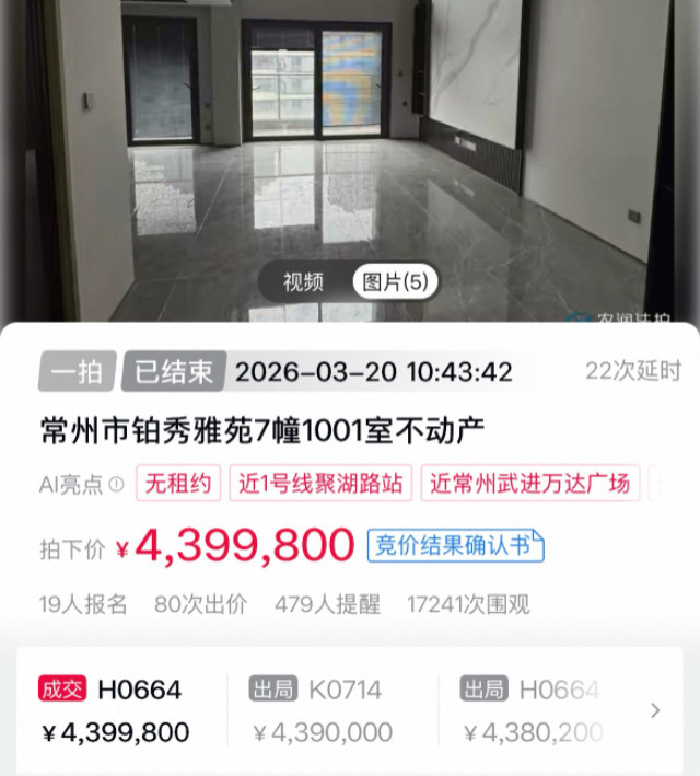 3月下旬,一套位于常州市武进区的法拍房成交遣散激勉商场讲理。