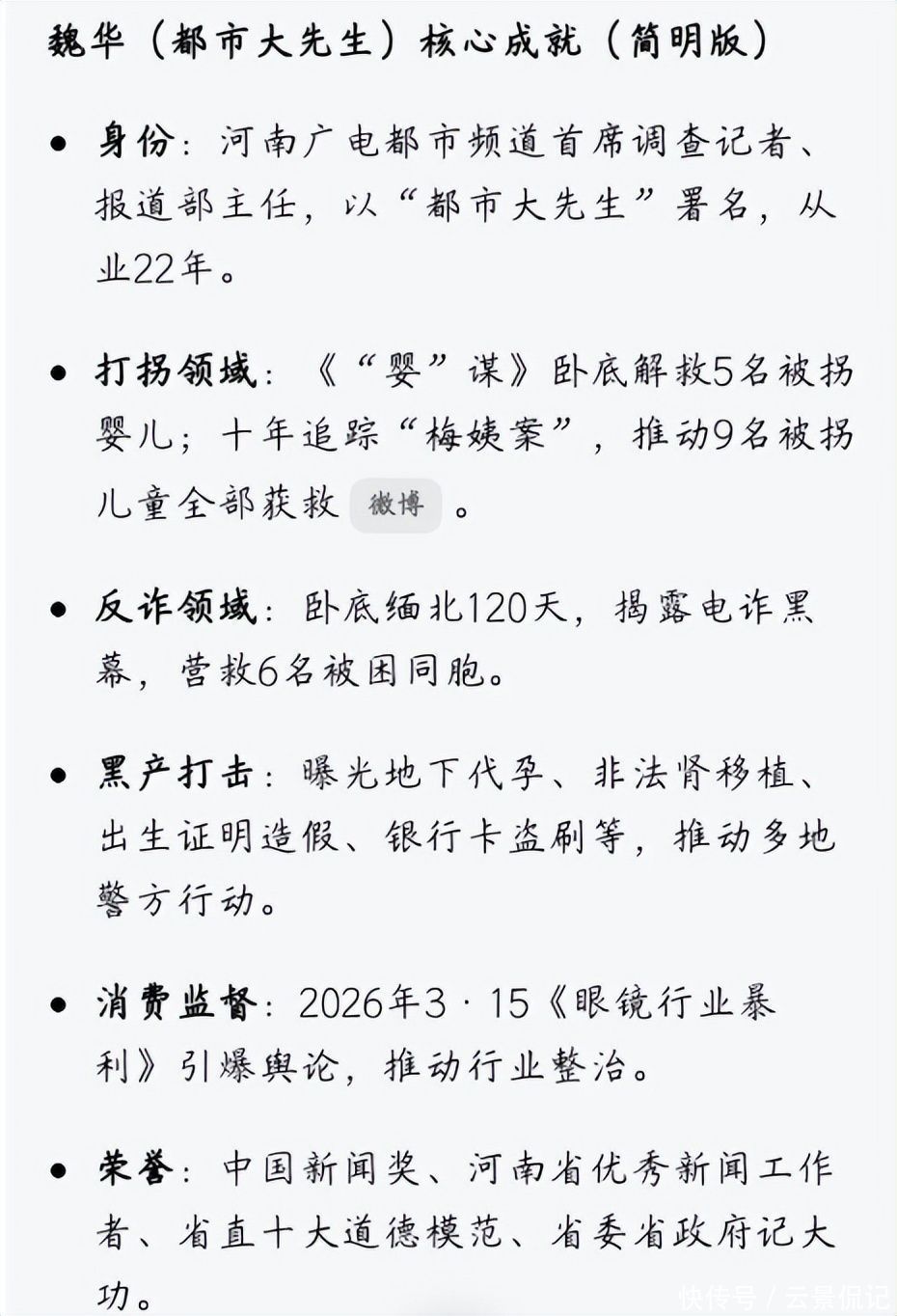 而魏华本东谈主从未出咫尺职何犒赏名单中——因持续揭露地下产业链,他历久遭受东谈主身拦截,不得不刊出原有身份信息,以匿名模式不竭行走于暗处,作念期间暗夜里的持灯者。
