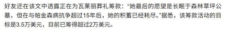 因无力支付殡葬用度,家属发起线上募捐,短短48小时内获全球影迷捐助超12万好意思元,最终收场她生前心愿:长逝于丛林草坪义冢那片她最爱的橡树林下。