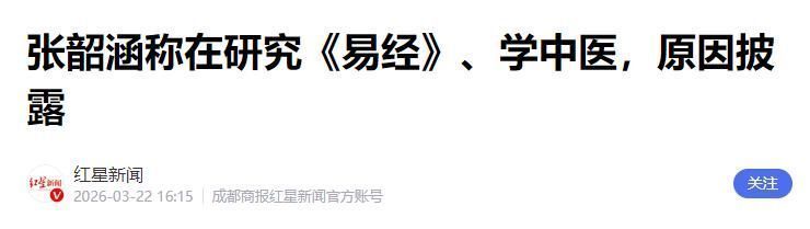参考府上:红星新闻《张韶涵称在参议《易经》、学中医,原因表露》
