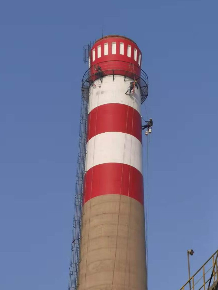 1.定位划线:从塔顶往下量尺 色环一般:红白相间,每环宽1.5~2.0米弹水平线,贴好意思纹纸,保证顺直