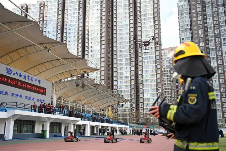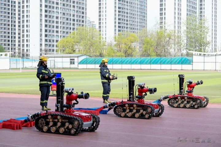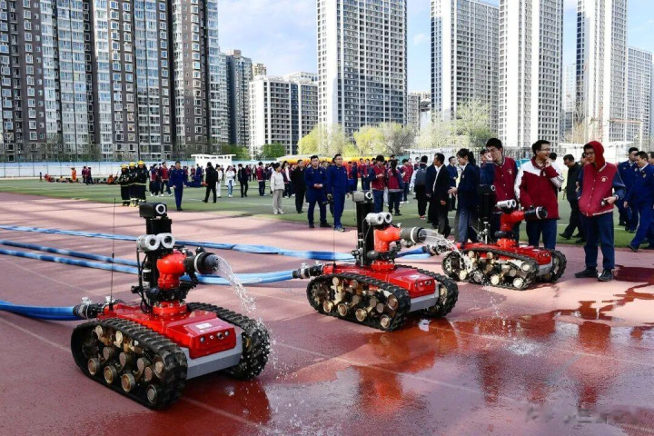 操场西侧的跑谈上,一瞥高精尖消防器材整王人布阵。熄灭机器东谈主外形神似袖珍坦克,在消防员遥控下携水带向“火场”行进。熄灭无东谈主机腾空而起,机身上的热成像仪及时传回画面。