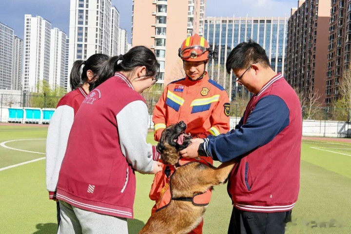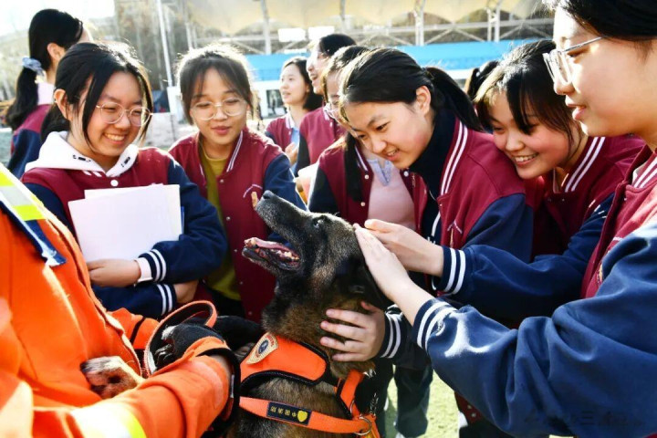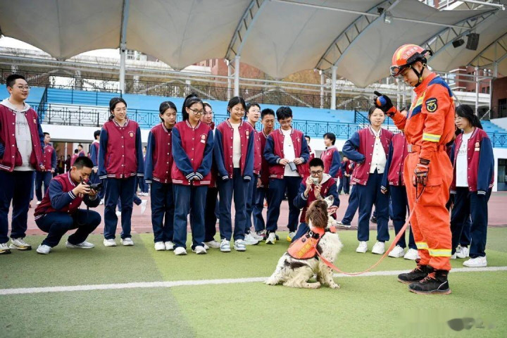 最温和的画面出刻下搜救犬互动区。搜救犬在警戒员提醒下快速穿越拦阻,精确找到“被困东谈主员”气息源。饰演松手,学生们争相与这位“难受战友”合影。