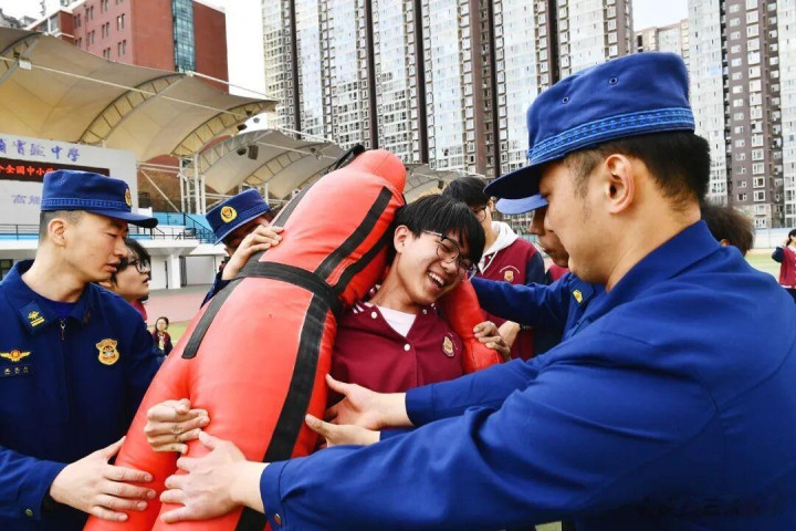 安全折返跑让同学们体验了消防员的正常责任。又名男生职守消防支持假东谈主跑饱胀程,气喘如牛:“这假东谈主好重!”“履行磨真金不怕火时更重,距离也更远。”消防员坦然恢复。