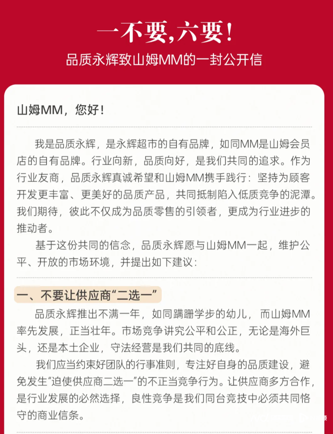 永辉公开喊话山姆: