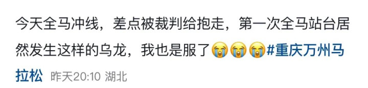 3月15日,重庆万州环湖马拉松比赛手艺,评判员诸**在实行裁判任务时出现责任荒唐,疏漏判断畅通员组别,拒抗曩昔跑进畅通员冲线。