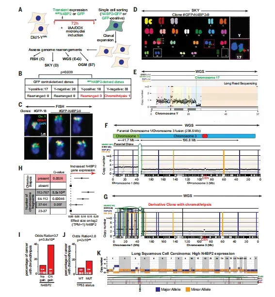 耐久克隆跟踪实验揭示了N4BP2的久了影响。在捏续传代40代以上的Dld1-YMN细胞中,野生型细胞饱和丢失Y染色体,而N4BP2敲除克隆仍有50%保留Y染色体(图2L),证明其捏续切割导致染色体不成逆丢失。在瞬时抒发实验中,88个N4BP2-GFP着手的克隆中检测到3例染色体重排,包括1例明确的染色体破碎事件,而GFP对照组37个克隆无一出现重排(P=0.039)。全基因组测序重构了一个繁衍克隆中1号染色体短臂41.7 Mb区域发生聚焦性染色体破碎,并插入3号染色体片断,这恰是一次性染色体不适意的典型特征。