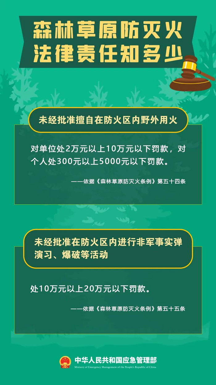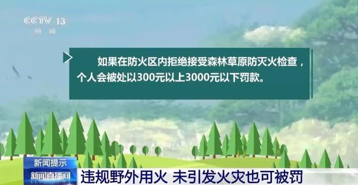 即使未变成火灾或未激发严重成果,非法郊野用火的个东谈主,也会被处以300元以上5000元以下的罚金。如若在防火区内终止给与丛林草原防熄灭查验,个东谈主会被处以300元以上3000元以下罚金。