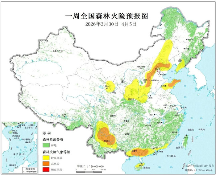 据济急责罚部丛林防火预警监测信息中心音讯,瞻望本周(3月30日—4月5日),北京西部和北部、天津北部、河北西部和北部、山西东部和南部、内蒙古东南部、辽宁西部和南部、山东中部和东部、河南西部、广东南部、广西南部、海南北部、四川南部、云南中部和北部、陕西中部和北部、甘肃中部和东部、青海东部的部分地区丛林火险品级为较高危急。