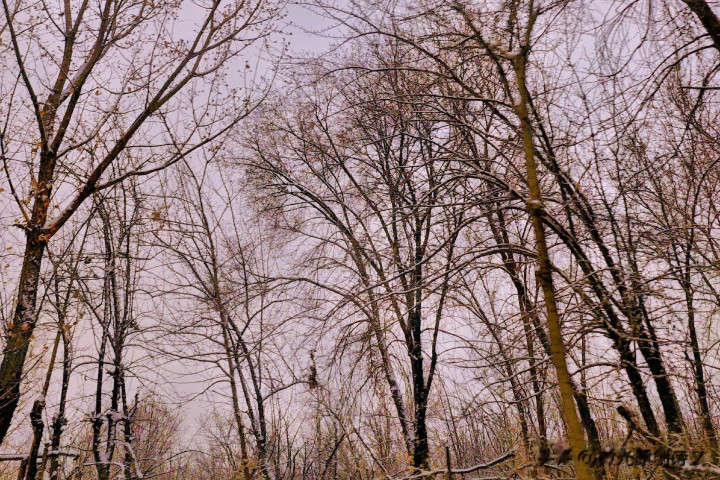离市区越远,雪的厚度渐渐变薄了。