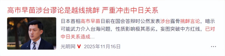 桥本琴绘的极点言论并非孤单事件。早在2025年11月7日,日本首相高市早苗在国会答辩时就已埋下导火索。她公然宣称,“台湾有事”可能组成日本可愚弄集体自保权的“死活危机事态”,示意可能武力介入台海问题。