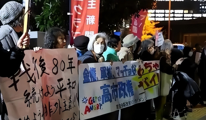 东京国会议事堂前和京都街头先后出现全球都集,抗议者举着口号反对高市早苗的涉台言论,条款政府坚捏和平阶梯。