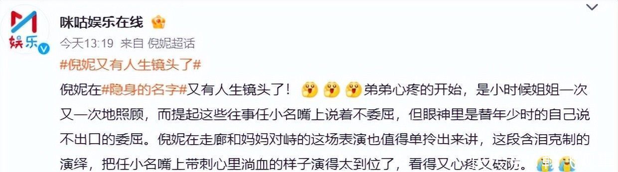 2026年3月22日傍晚,一条微博话题强势空降热搜榜首,热度值已而松懈98.7亿,全网转发超420万次。倪妮在新剧《隐身的名字》中的一段走廊戏被单独编著传播,短短两分钟视频激励集体心情共振,无数网友边看边抹泪,直言“潜力太大”;央视文艺频说念官微更以“教科书级微表情搬动”为题撰文点评,盛赞其扮演具备电影级的心情密度与戏剧纵深感。