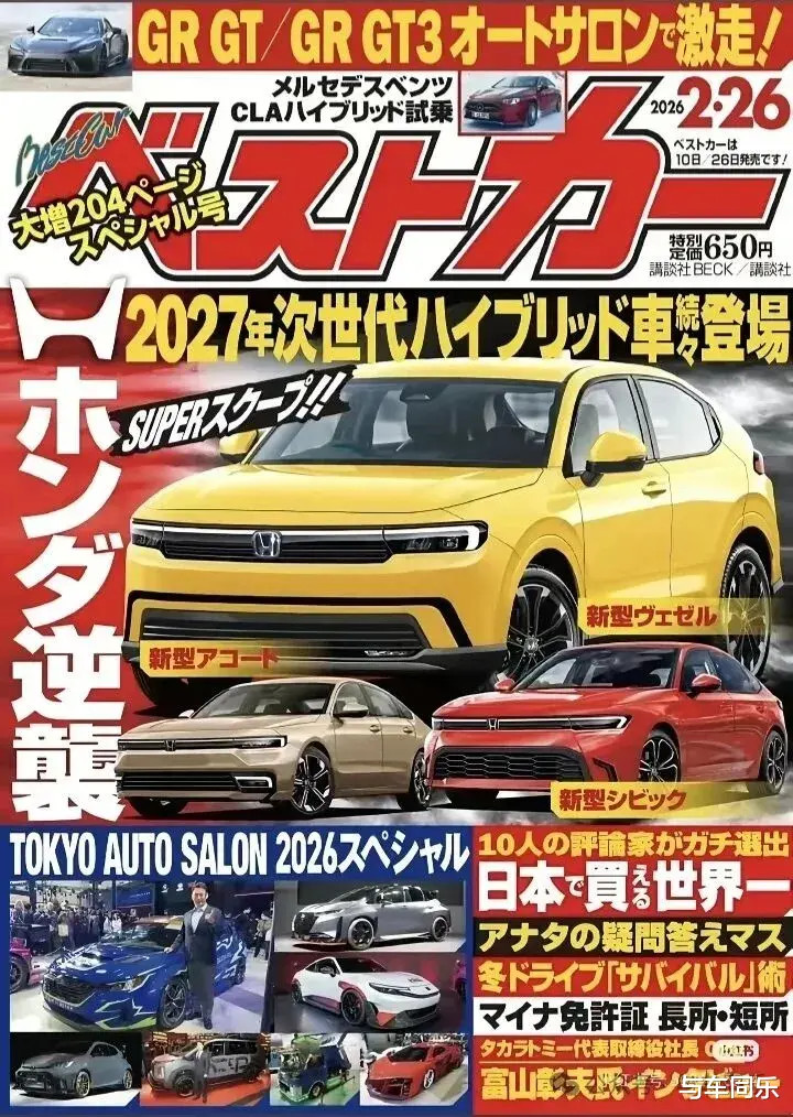 有杂志为证,2月26日的半月刊。本田3款车换代的讯息放在正中间。标题的笔墨里提到:2027年次世代搀杂能源车型,难说念这3款车齐改为搀杂能源系统?